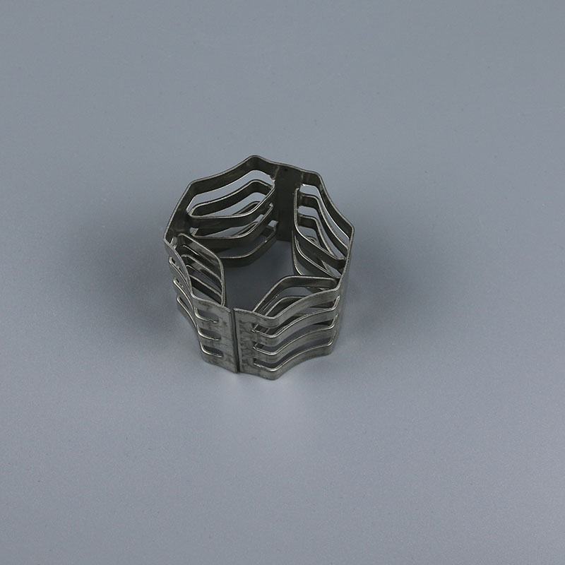 金屬八四內(nèi)弧環(huán)填料,該填料在填裝時(shí)排列規(guī)則趨于規(guī)整化,具有規(guī)整填料的效應(yīng),并具有高傳質(zhì)效率,和較低的阻力降,可廣泛用于各種操作條件下的蒸餾,吸收,氣提、萃取等傳質(zhì)操作。工業(yè)上,由于填料塔結(jié)構(gòu)簡單,操作方便而得到了廣泛應(yīng)用,其核心構(gòu)件填料也因此而得到了廣泛的研究.